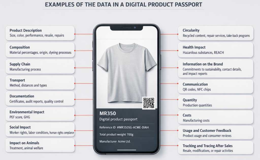 The DPP is a pivotal element of the EU’s sustainability strategy, derived from the EU Green Deal, and the Ecodesign for Sustainable Products Regulation (ESPR) came into effect on July 18th. Full implementation is expected by 2026 for products entering the EU market. Companies implementing the DPP system provide the following information about their products: