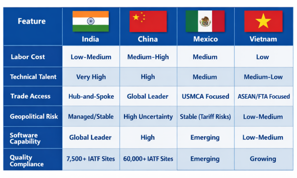 Accompanying this speed is a rigorous commitment to quality: with 7,541 IATF 16949-certified sites, India ranks second globally in certification volume, ensuring that Indian-made components meet the stringent precision and safety benchmarks required by top-tier global OEMs (ACMA).